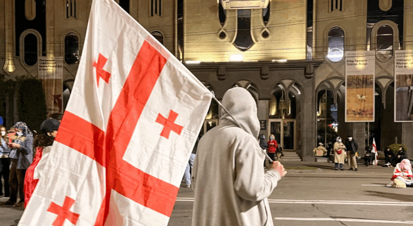 В этот же день оппозиционные силы Грузии, одним из неформальных лидеров которой является бывший президент страны Саломе Зурабишвили (до 2018 года обладавшая французским гражданством), организовали на фоне избирательной кампании массовые акции протеста. Главные волнения проходили в Тбилиси, где толпа недовольных, смяв полицейские кордоны, прорвалась на территорию резиденции президента Михаила Кавелашвили.